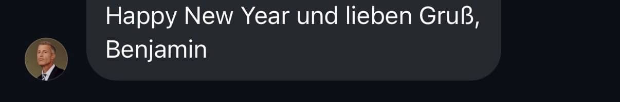 Zu meiner noch größeren Überraschung schickte mir Herr von Stuckrad-Barre, oder Benjamin, wie ich ihn offenbar nennen darf, sogar eine nette Nachricht mit diesem Abschiedsgruß