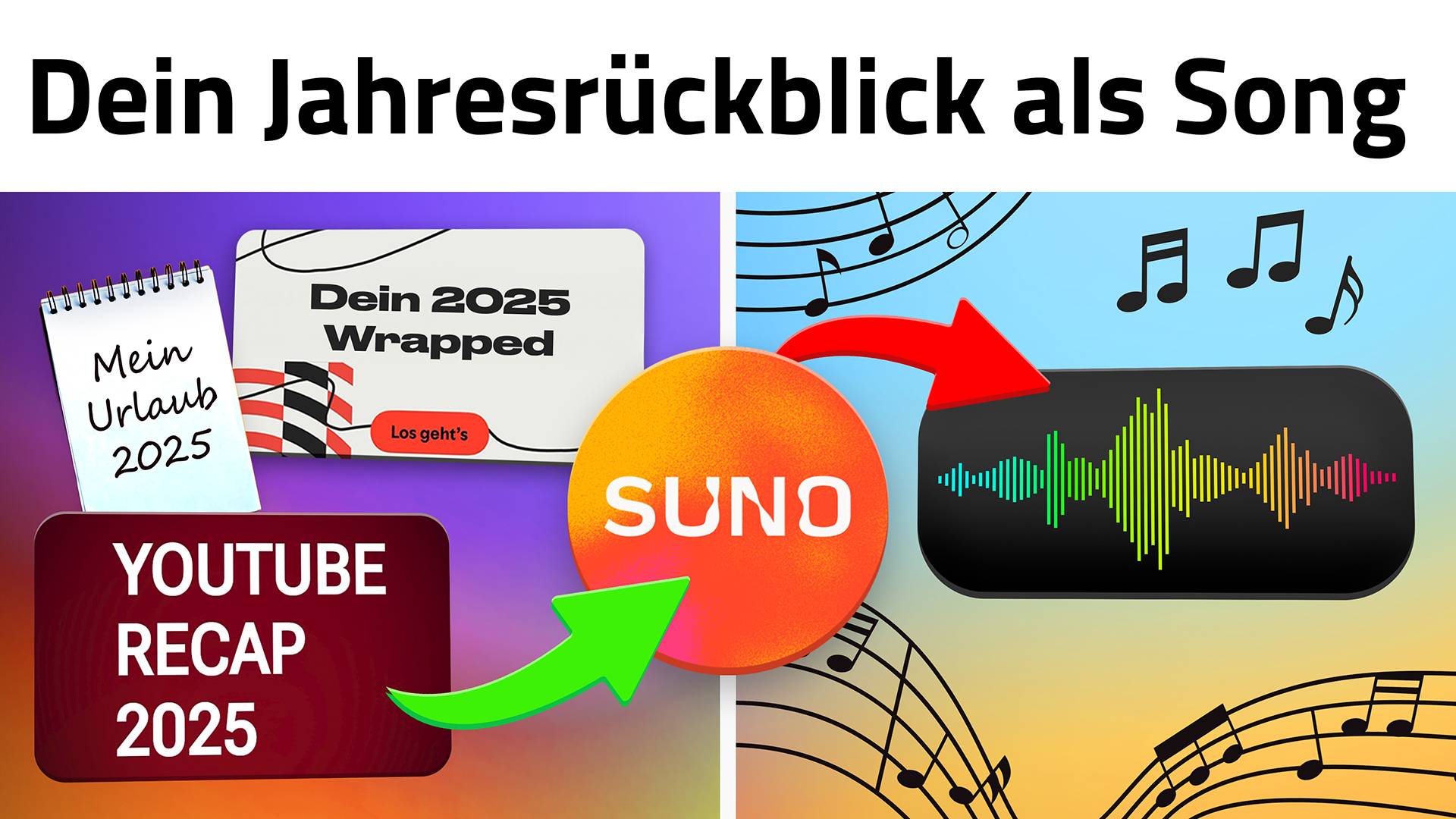 Auf meinem Tutorial-Kanal zu Jahresbeginn erschienen: In diesem Tutorial zeige ich dir Schritt für Schritt, wie du mit KI aus deinem persönlichen Jahresrückblick 2025 einen Song erstellst, den sich auch andere gerne anhören. Und das können auch Anfänger - ganz ohne Kosten oder Musikkenntnisse!