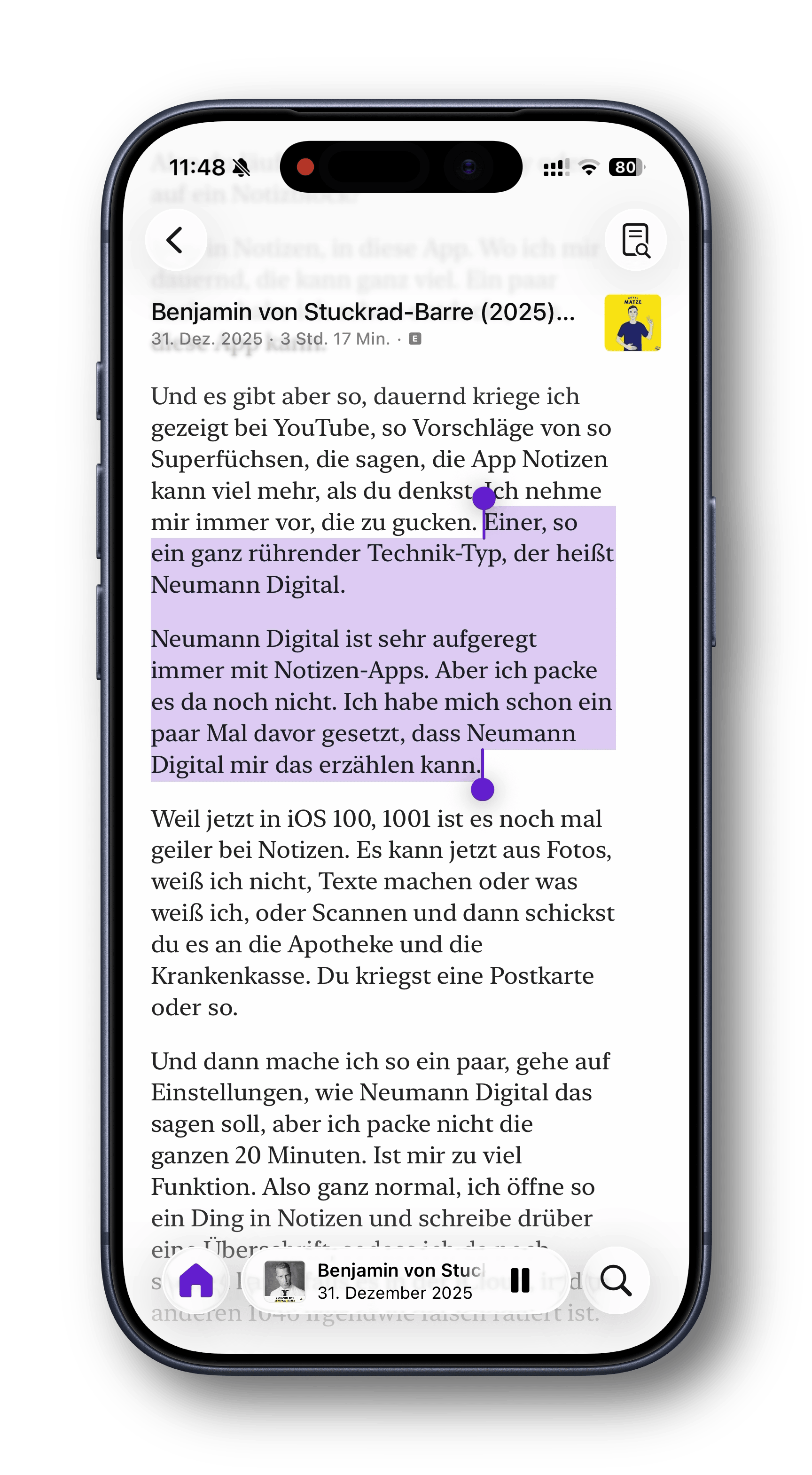 Was hat das mit mir zu tun? In der aktuellen Ausgabe plauderte "Matze" mit dem Journalist und Schriftsteller Benjamin von Stuckrad-Barre über allerlei Themen. Und der, so stellte sich heraus, schaut meine Videos zur Vertiefung seiner iPhone-Kenntnisse.