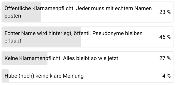 Aktuell wird über Klarnamenpflicht im Internet bzw. in sozialen Medien debattiert. Welche Lösung bevorzugst du?