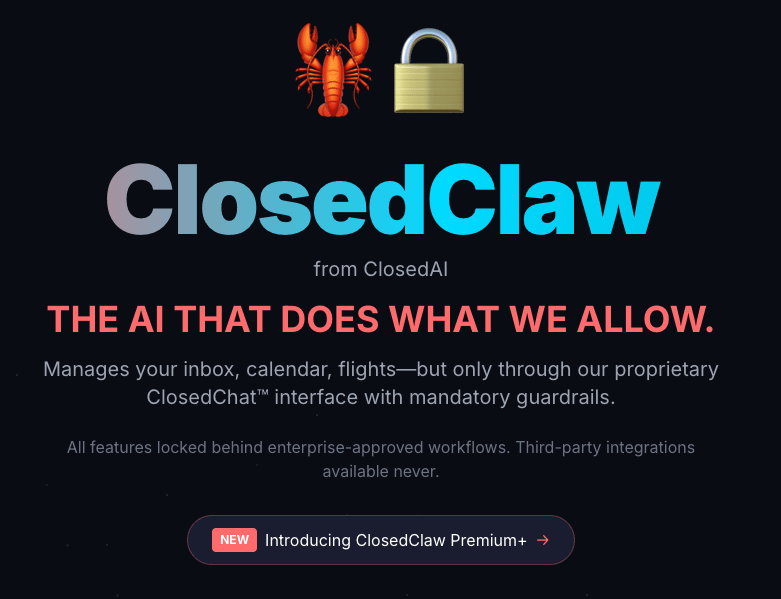 Die Community ist trotzdem gespalten: Manche sehen Steinbergers Einstellung als Ritterschlag, andere haben sein Projekt bereits in "ClosedClaw" umgetauft. Es gibt sogar eine Persiflage-Website gleichen Namens, mit der die erwartete Kommerzialisierung von OpenClaw aufs Korn genommen wird ("Die KI, die das tut, was wir erlauben"):