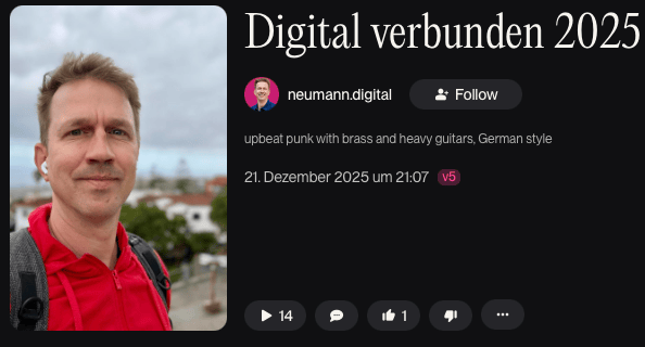 Dank Musik-KIs wie Suno ist so ein persönliches Musikstück in jedem gewünschten Stil inzwischen im Handumdrehen erstellt und ich muss ehrlich zugeben, dass ich von der Qualität ziemlich begeistert bin. Wenn man nicht das allerneueste Modell für die Musik-Generation verwendet, ist die Erstellung sogar kostenlos.