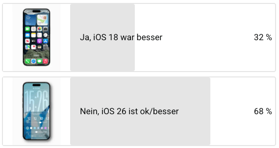"Ich fand iOS 18 Perfekt. Ich finde Liquid Glass zwar ganz cool, aber das es dadurch einfach nur ein Akku und Performance Fresser ist wünschte ich das ich es nie geupdatet hätte."
